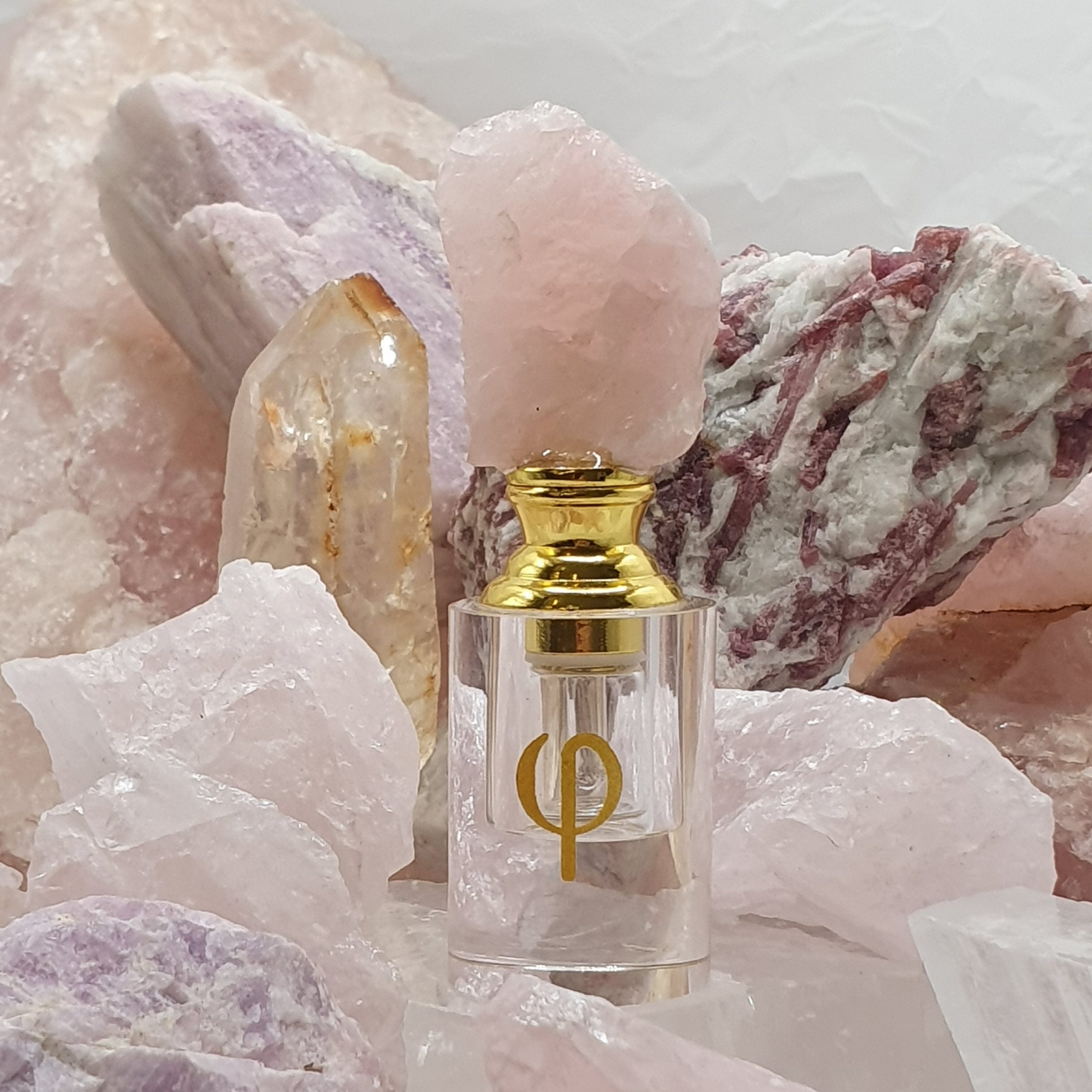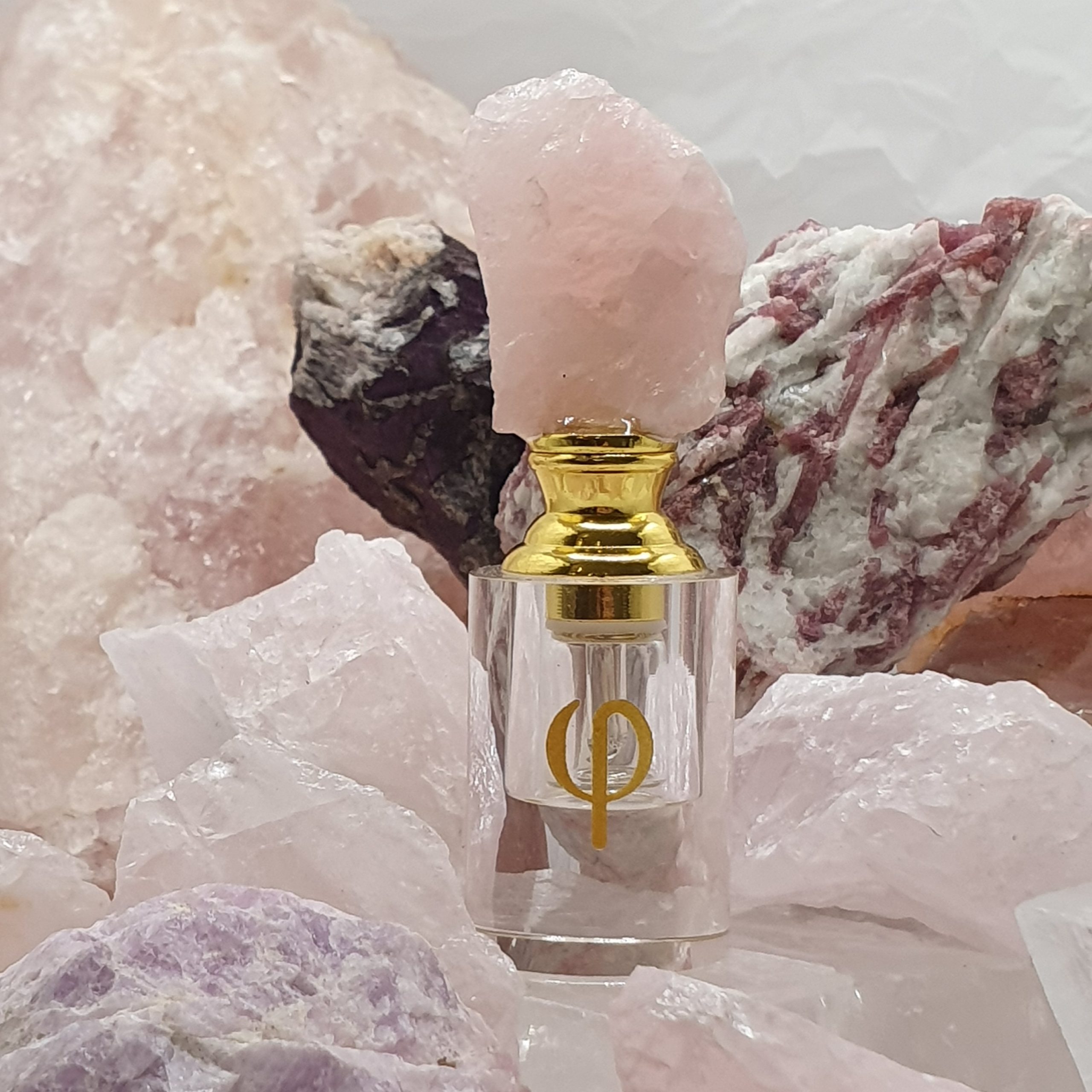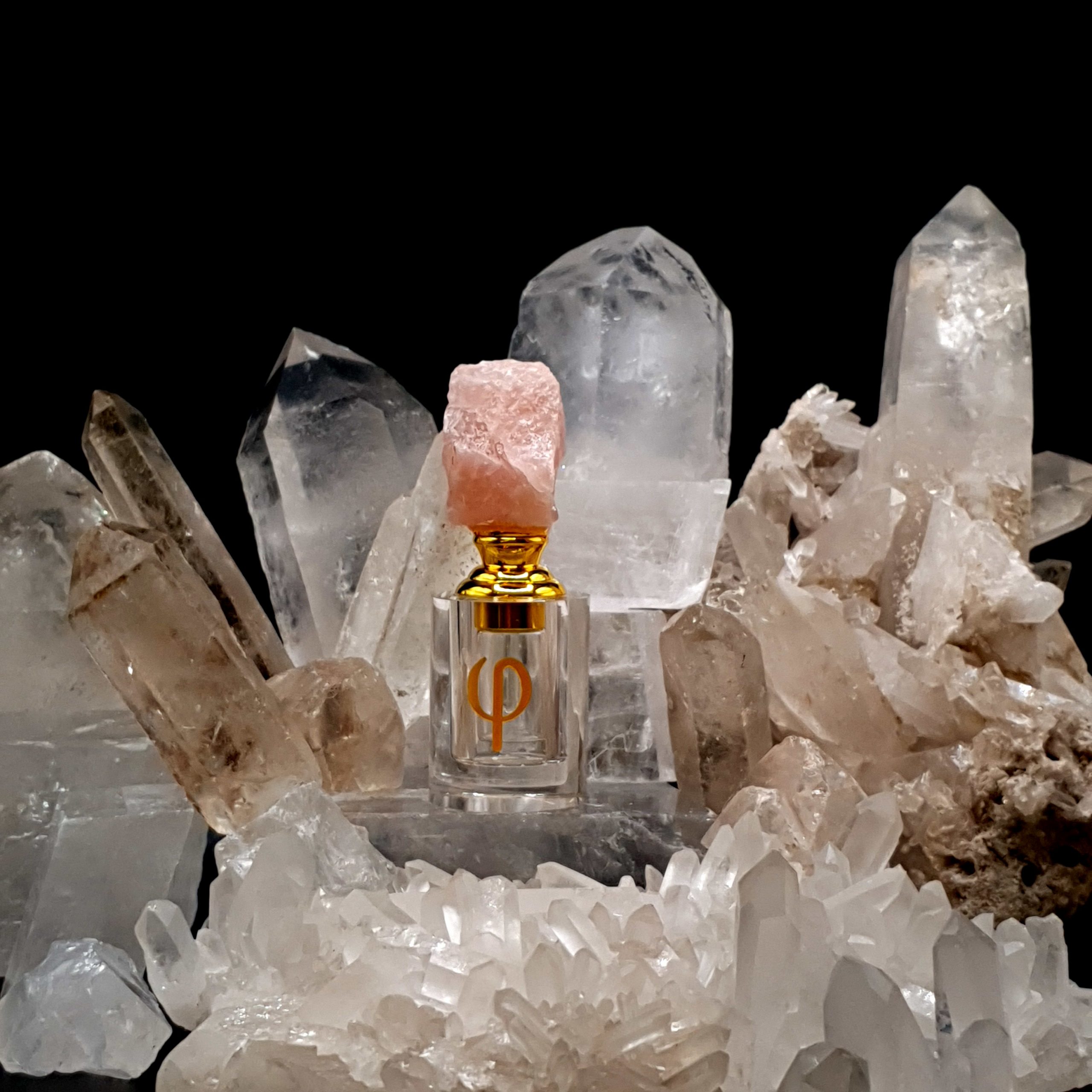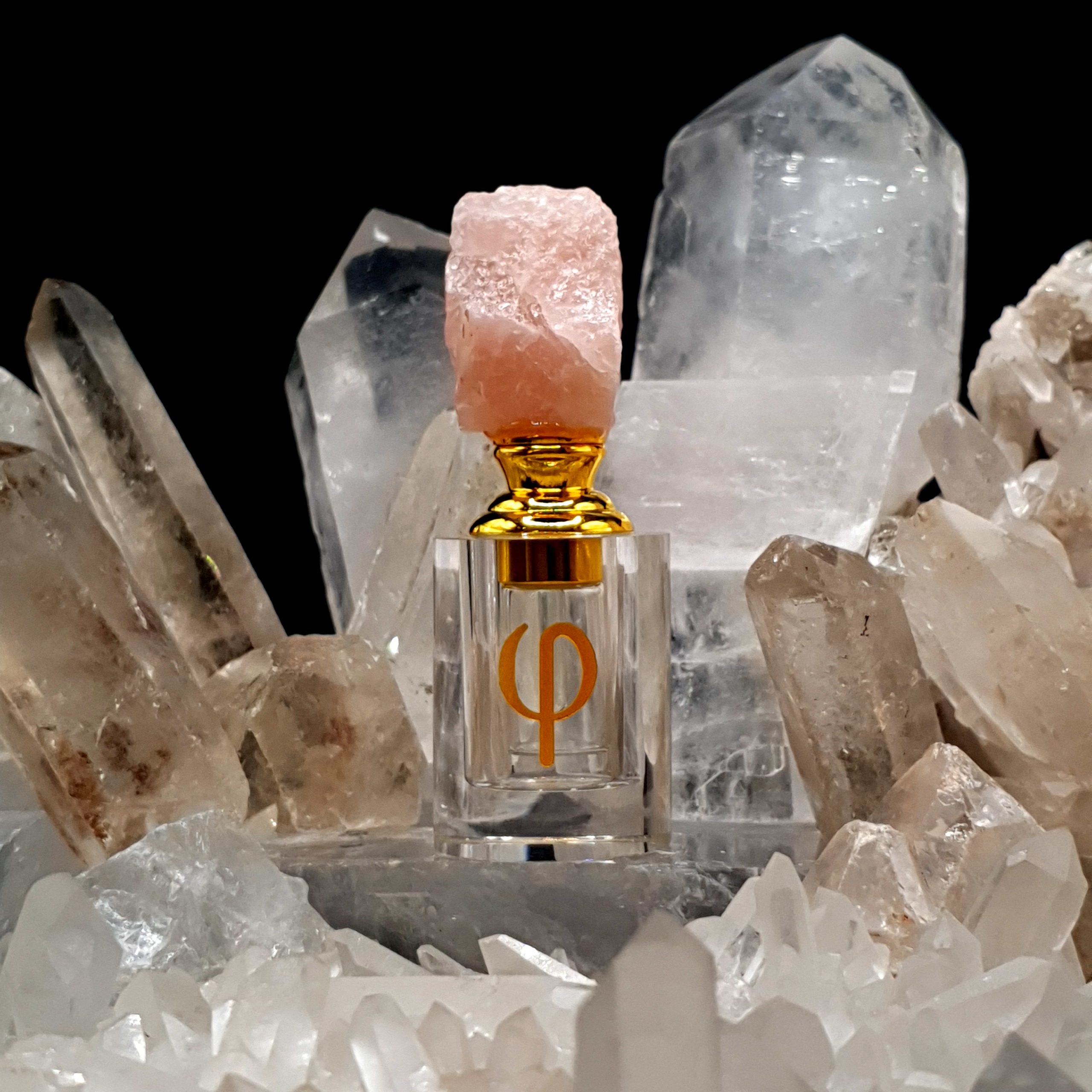 Butelka za szkła kryształowego zwieńczona naturalnym kryształem o pojemności 1 ml i 3 ml. Idealna do przechowywania ekskluzywnych olejków z Oudów i drzewa sandałowego jak również wszelkich attarów i jako perfumetka do perfum w olejku.
